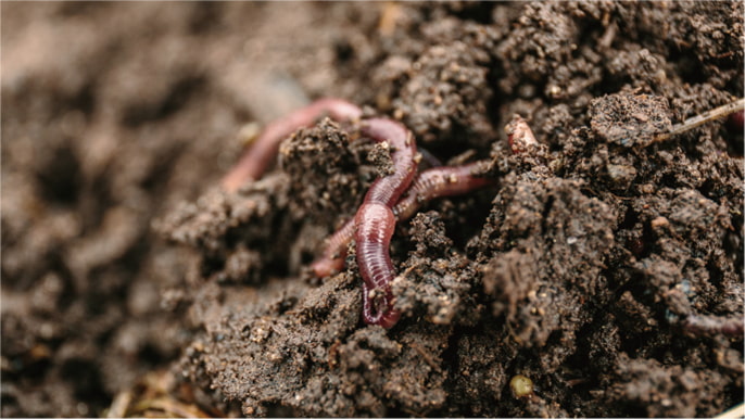 良い土かどうかは、手で土をつかんだ際の土の崩れ方でわかります。すぐサラサラと砂のように流れてしまうのは保水力不足、逆に固くて崩れにくい土は粘土質で水ハケが悪いといえます。良い土は、ほろほろと少しの塊がありながら崩れていく土です。そして、ミミズがいたら良い土です。なぜなら、ミミズは天然の土壌改良屋さんとも言える働き者。ミミズは落ち葉や土とともに微生物や有機物などを食べ、排泄をするのですが、この排泄物が粒状のため、土の通気性がよくなります。それだけではなく、ミミズの排泄物には窒素など有機物が含まれており、土中を移動しながら糞と一緒に排泄することで良い土壌をつくっていきます。つまり、微生物の餌となる有機物が多い土が、ミミズを呼び寄せ、より良い土へと循環していくのです。