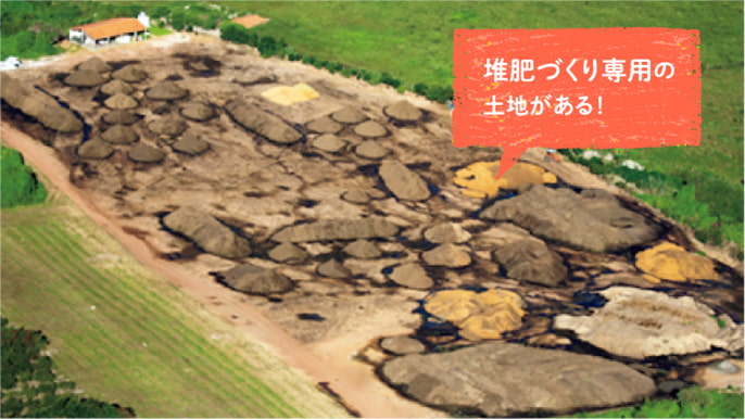 良い土をつくるためには、微生物のエサとなる、堆肥が重要になっていきます。そのため、主要な原料を栽培するだけではなく、堆肥を自ら作る会社もあります。